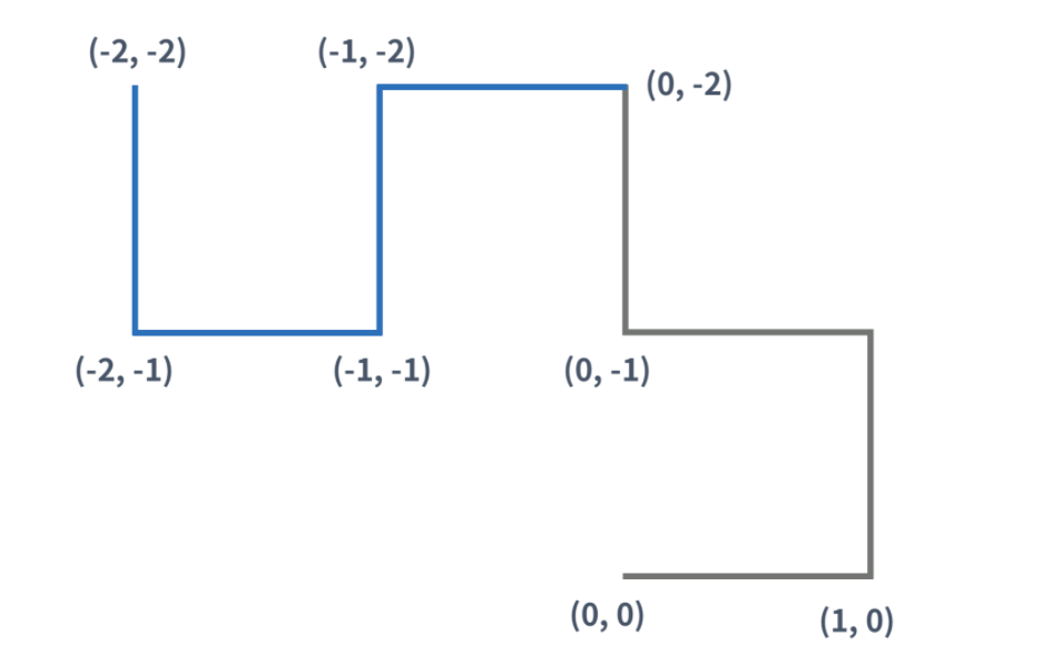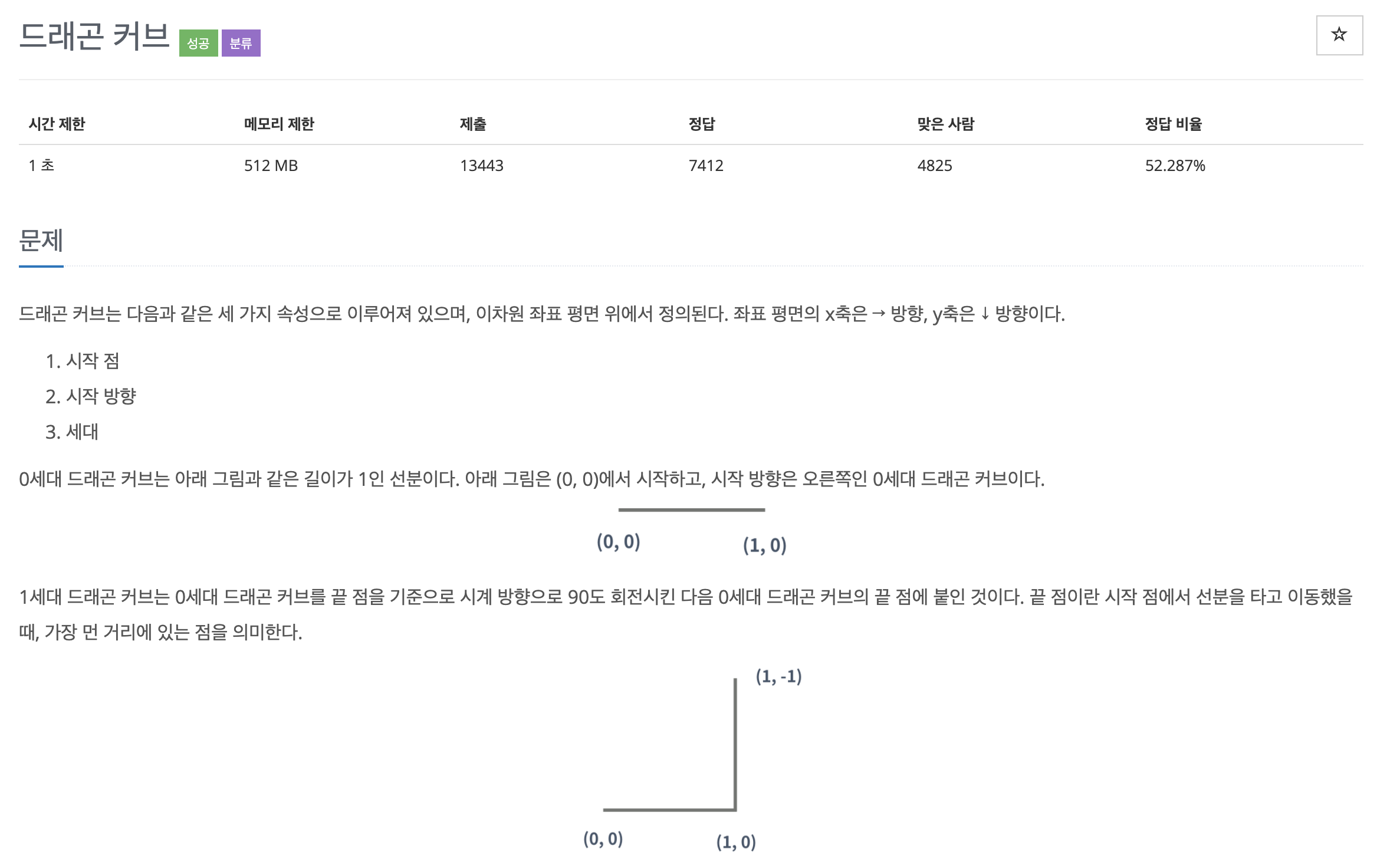 n세대는 n - 1 세대 드래곤 커브 끝점을 기준으로 시계 방향으로 90도 회전시킨다음 끝점에 붙인 것이다.