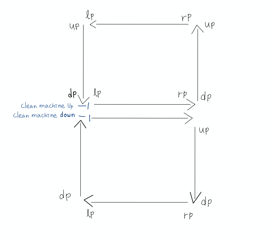 moveDown(0,cleanMachineUp.first - 2,cleanMachineUp.second);// (up, dp, y)